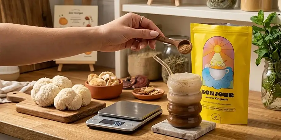 Au-delà de la base peu acide, c'est la composition en champignons adaptogènes qui différencie Bonjour Drink d'une simple tisane céréalière. Le Lion's Mane et le Chaga ont tous deux fait l'objet de recherches spécifiques sur la santé digestive.