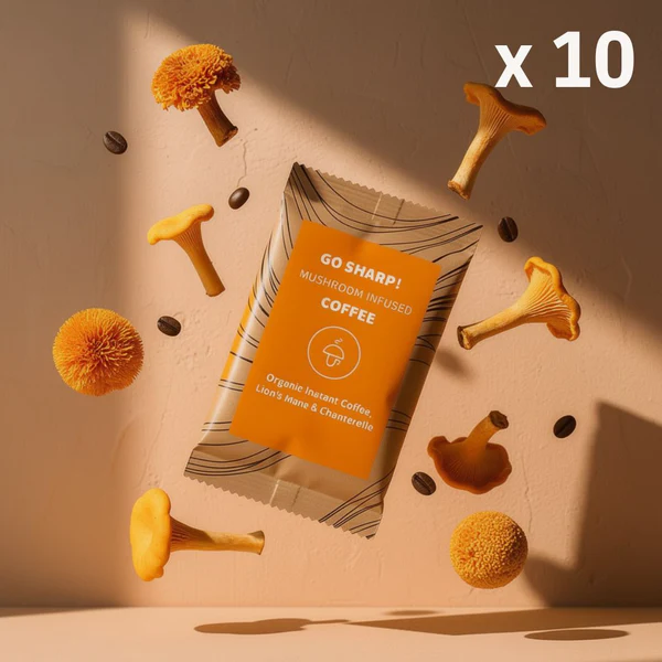Ce produit phare associe le café Arabica au Lion's Mane et à la Chanterelle sauvage. Chaque sachet contient 400 mg d'extrait de Lion's Mane pour soutenir la clarté mentale lors de tâches complexes. Il est particulièrement apprécié par les étudiants et les profils créatifs cherchant une concentration prolongée.