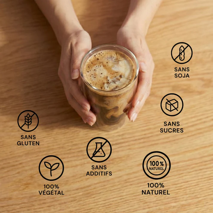 L'utilisation du produit a été pensée pour être la plus simple possible, ne nécessitant aucune machine à café spécifique. Il suffit de verser une cuillère de poudre, environ 6 g, dans une tasse et d'y ajouter de l'eau chaude ou une boisson végétale selon les préférences. La présence de lait de coco apporte naturellement une note crémeuse et un léger goût de noisette qui masque toute amertume.